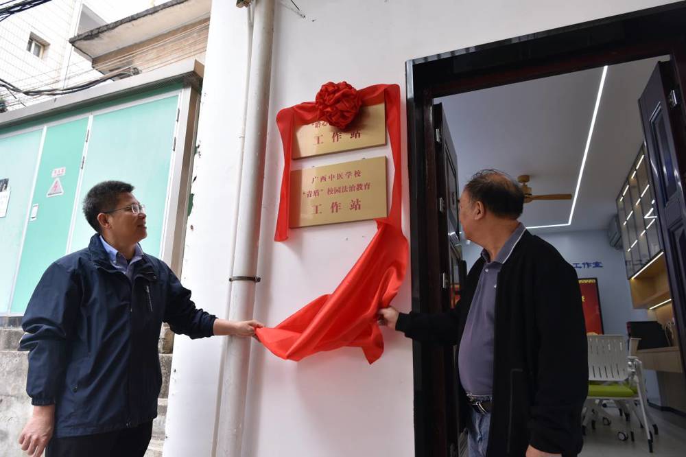 揭牌仪式上,班主任工作室总顾问,学校党委刘武副书记、副校长首先致辞,他说:“班主任工作室从申报到立项,从建设到壮大,是我看着一步步走过来,我感到很欣慰,因为班主任工作室的成立,不仅是对班主任个人发展的支持,更是对全体学生健康成长的支持。我希望我们中医学校所有学生都能在班主任的关心和爱护下,健康快乐地成长。”随后,刘竑清校长发表讲话,他说:“本次班主任工作室、两个工作站的揭牌仪式的顺利举行标志着鸭脖班主任工作、德育工作有了一个新的起点。希望青年骨干班主任能做到立德树人、勇担使命,扎扎实实地提升业务水平,要将工作室建设成为广西教育的一张卓越名片,相信我们一定能够在立德树人的伟大实践中,奋发有为,再立新功。”