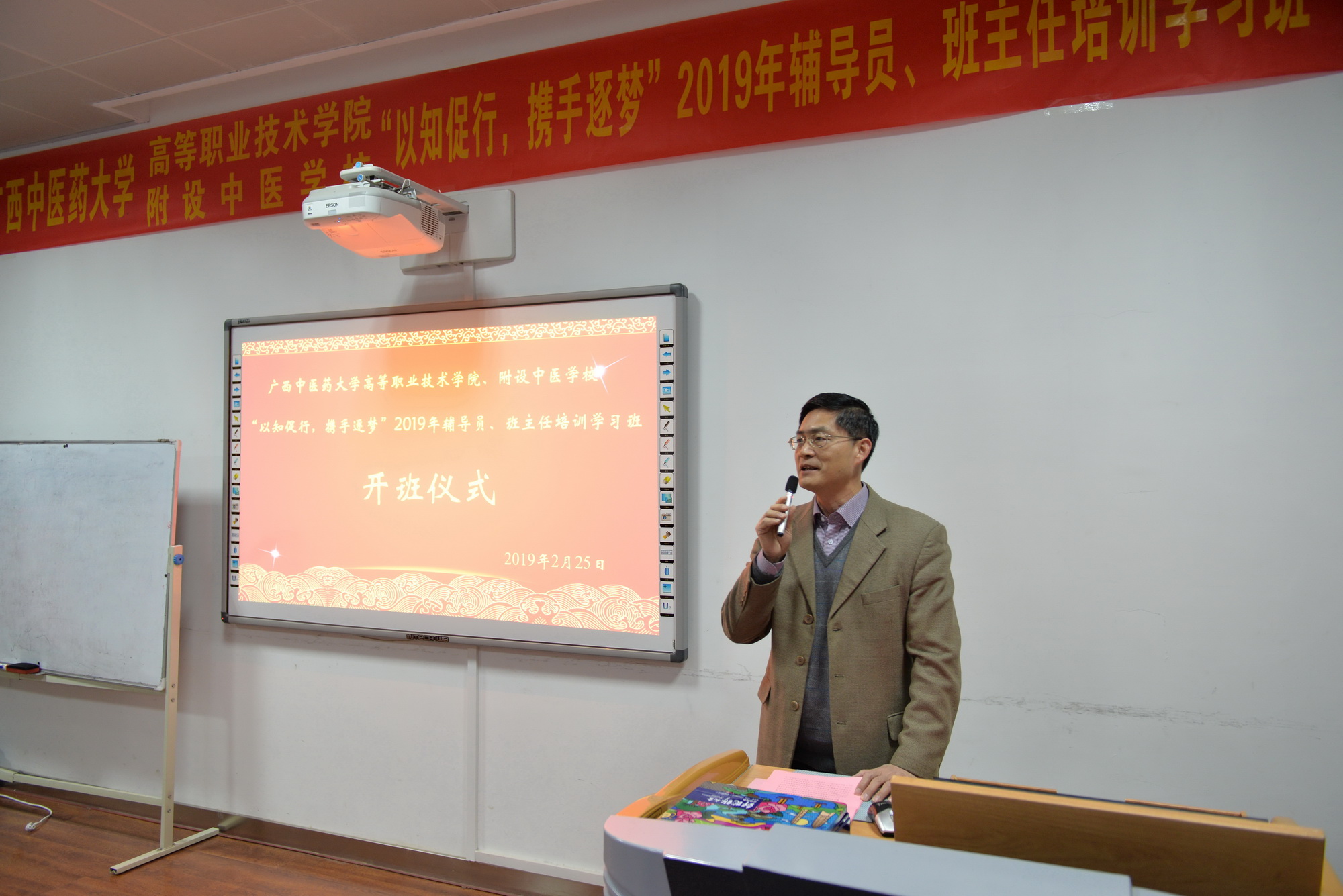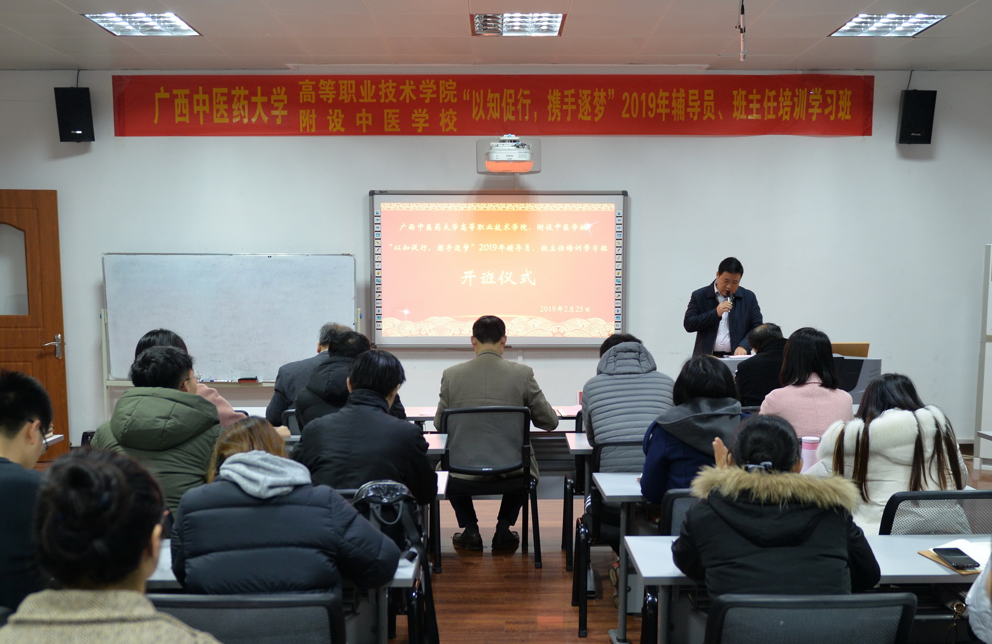 2月25日上午,高等职业技术学院、附设中医学校为期3天的“以知促行,携手逐梦”2019年辅导员、班主任培训班在北湖校区正式开班。YABO鸭脖党委副书记何并文出席开班仪式并作专题培训,高职院、附设中医学校党委书记蒋子华、高职院、附设中医学院(校)长刘竑清、副院(校)长黄勇出席仪式,40多人参加了培训。