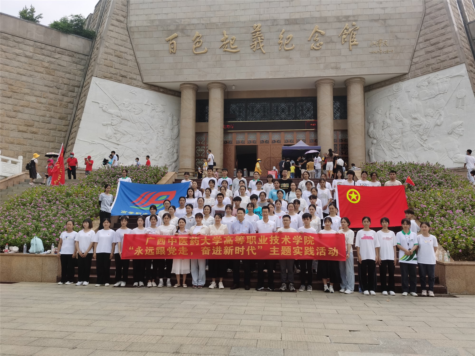 为庆祝中国共产党成立100周年,鼓励广大青年团员讲好党史故事,传承红色基因,7月13-22日,高等职业技术学院团委组织90名师生在南宁、百色、崇左、田东、永福等地开展“永远跟党走,奋进新时代”主题社会实践活动。