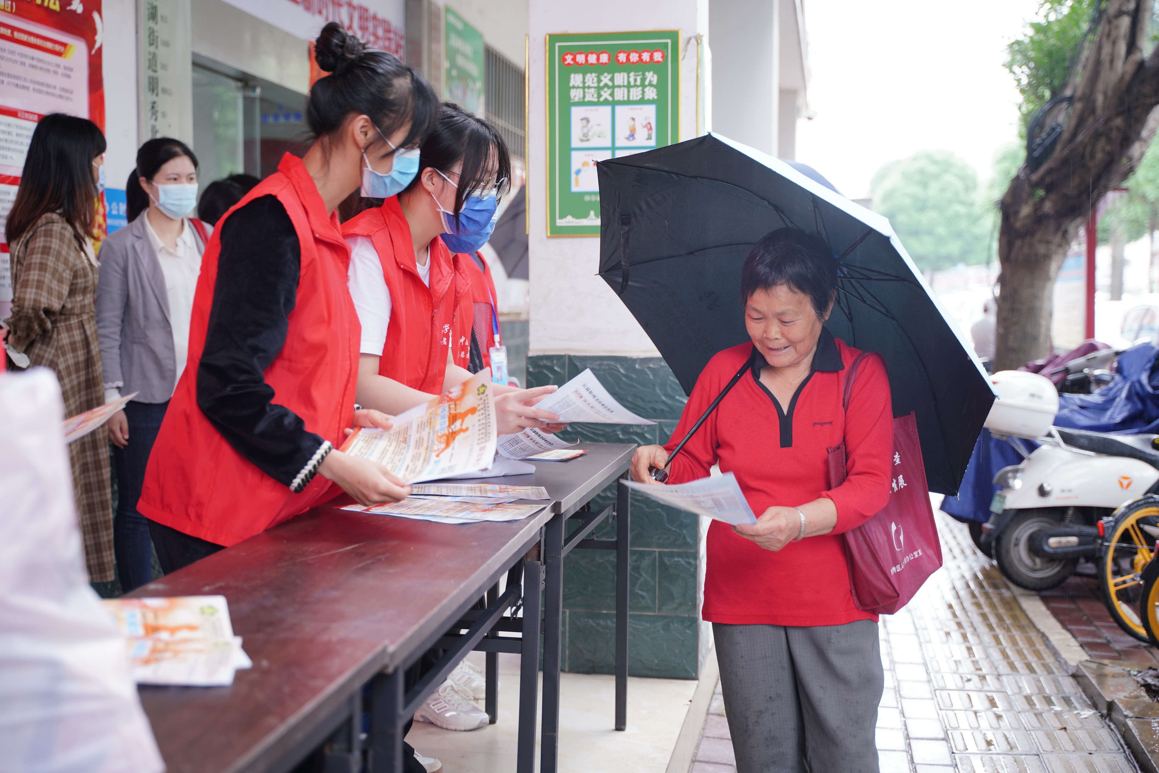 志愿者为居民测量血压