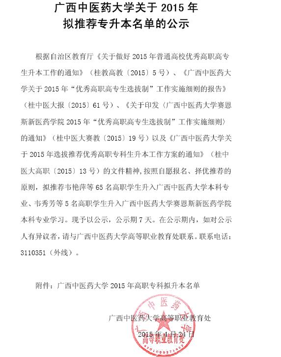 YABO鸭脖关于2015年拟推荐专升本名单的公示