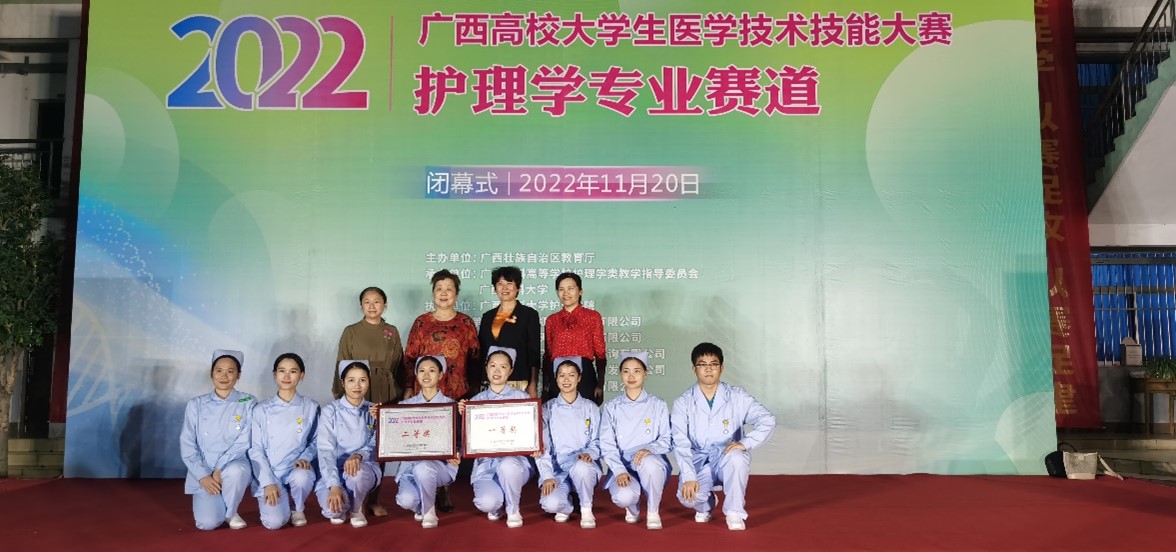 鸭脖代表队在2022年广西高校大学生医学技术技能大赛 (护理学专业赛道)比赛中荣获团体一等奖和二等奖