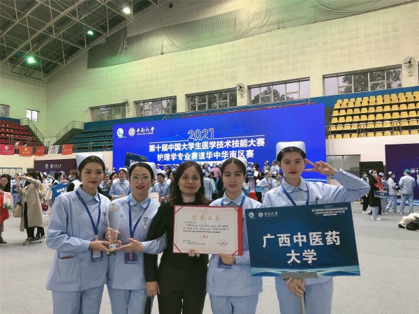 鸭脖由护理学院教师谢瑾惠作为领队,唐己艳、陈晨、李雯雯、谭凤琴4名同学组成护理学专业代表队参加比赛。参赛队员经过激烈角逐,面对挑战、敢于拼搏、灵活应对,以扎实的专业知识、娴熟的技能操作冲出初赛,进入复赛,最终荣获护理学专业赛道华中华南赛区二等奖的好成绩。