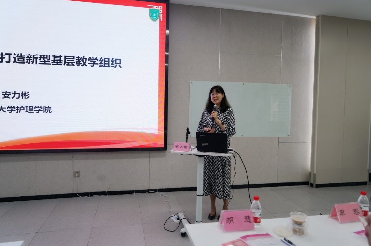 随后,教育部高等学校护理学类专业教学指导委员会副主任委员、大连大学护理学院院长安力彬教授作题为《建设虚拟教研室 打造新型基层教学组织》的专题报告;护理学院党委书记、院长吴彬从基本情况、建设基础、建设特色及建设规划等方面,介绍了中南地区护理学专业虚拟教研室总体情况及建设任务。