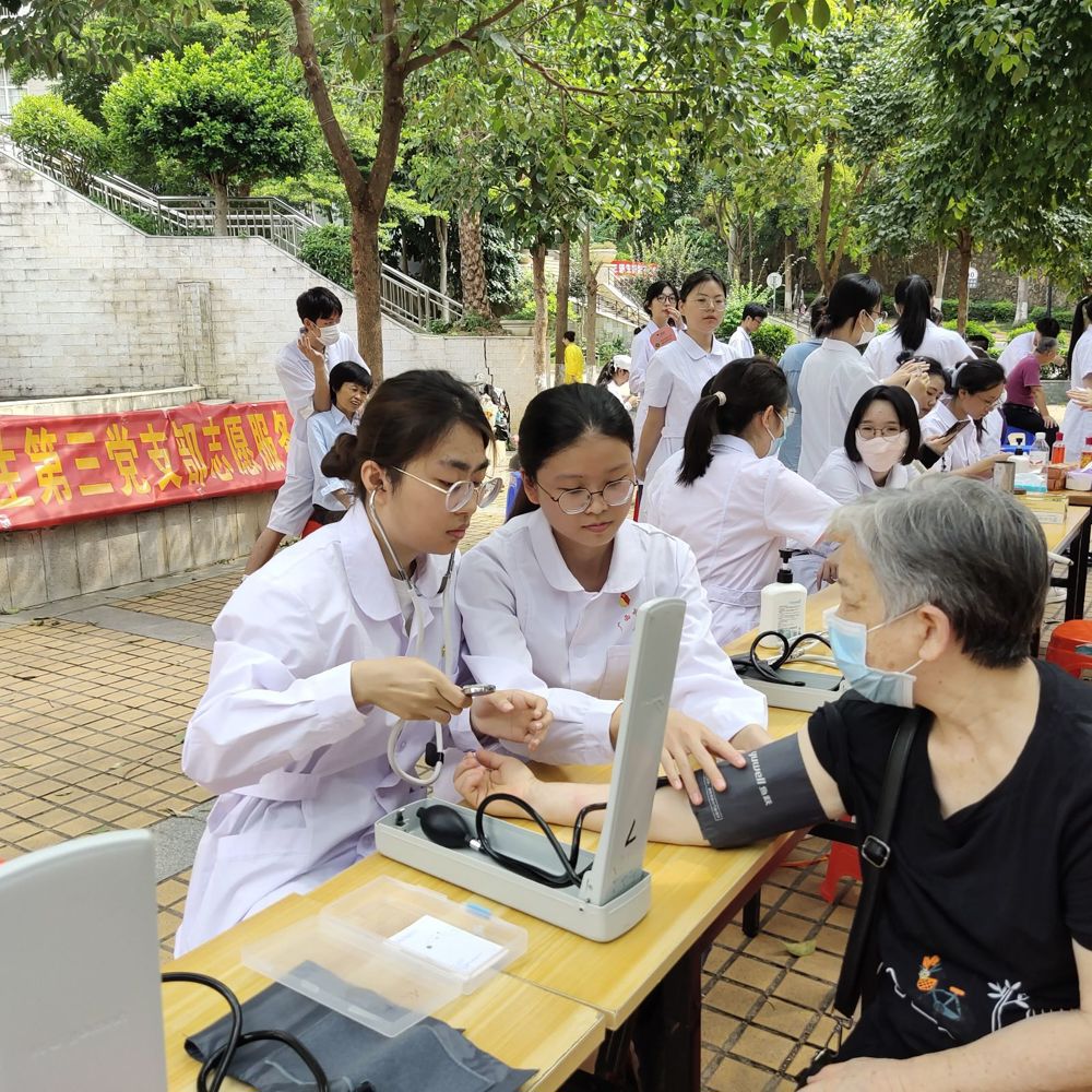 6月4日上午,护理学院学生第三党支部携手大学生手法医学协会,在南宁市青秀区长岛800里香江小区开展“医心向党,一路前行”志愿服务活动。活动由支部书记布银瑶带队,支部19名党员及16名积极分子共同参与。
