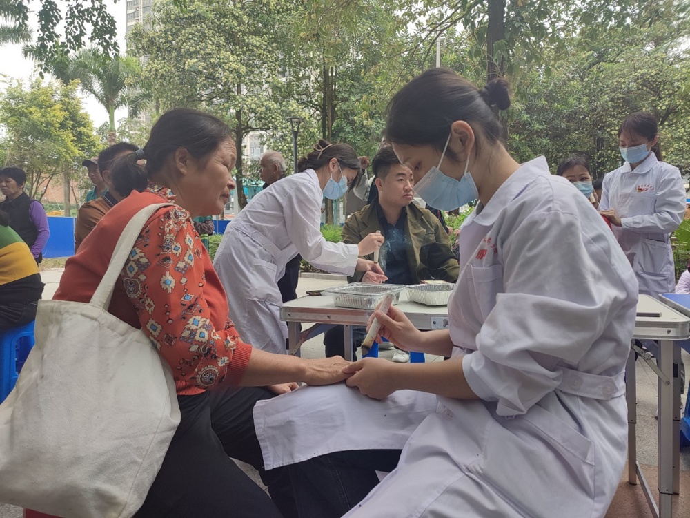 本次志愿服务以义诊形式开展,内容主要包括艾灸、测血压、刮痧、测血糖等健康服务以及慢性病防控、日常保健的中医文化宣传。在活动过程中,各位同志积极为居民进行健康检查,主动向居民宣讲慢性病知识及日常保健的中医知识,帮助居民建立了科学的健康理念,让更多的人重视预防,早诊早治,共享健康。党支部师生以良好的精神面貌、严谨认真的服务态度、专业的健康知识教育获得了社区居民的一致认可。