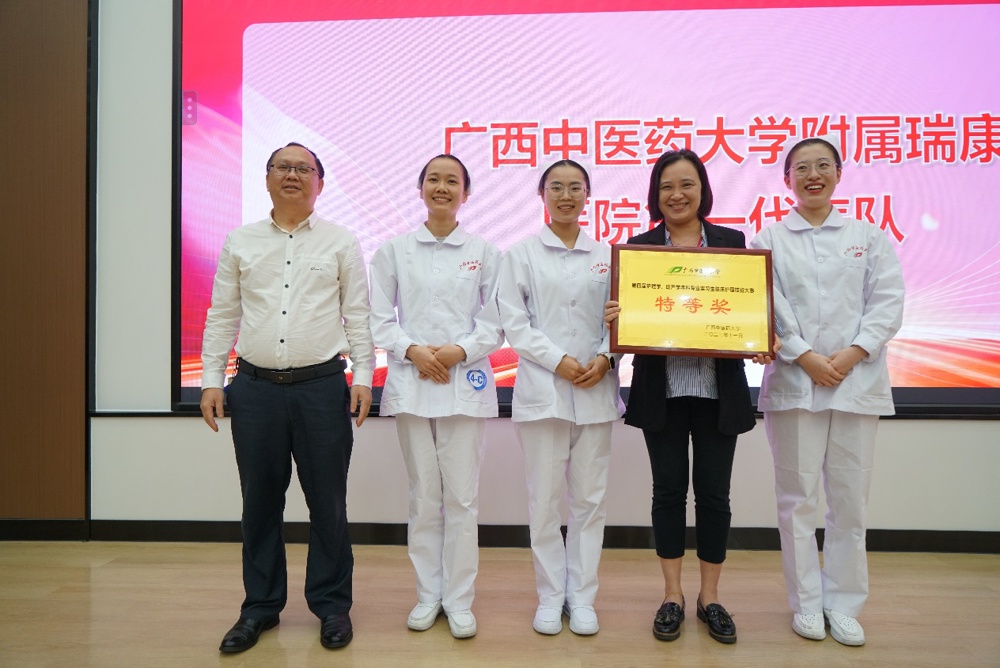 经过激烈的角逐,学校附属瑞康医院第一代表队荣获特等奖,学校附属瑞康医院第二代表队、第一附属医院第一代表队、柳州市人民医院代表队荣获团体一等奖,柳州市工人医院代表队、学校附属国际壮医医院代表队、自治区南溪山医院代表队、柳州市中医医院代表队和学校第一附属医院第二代表队拿下团体二等奖。