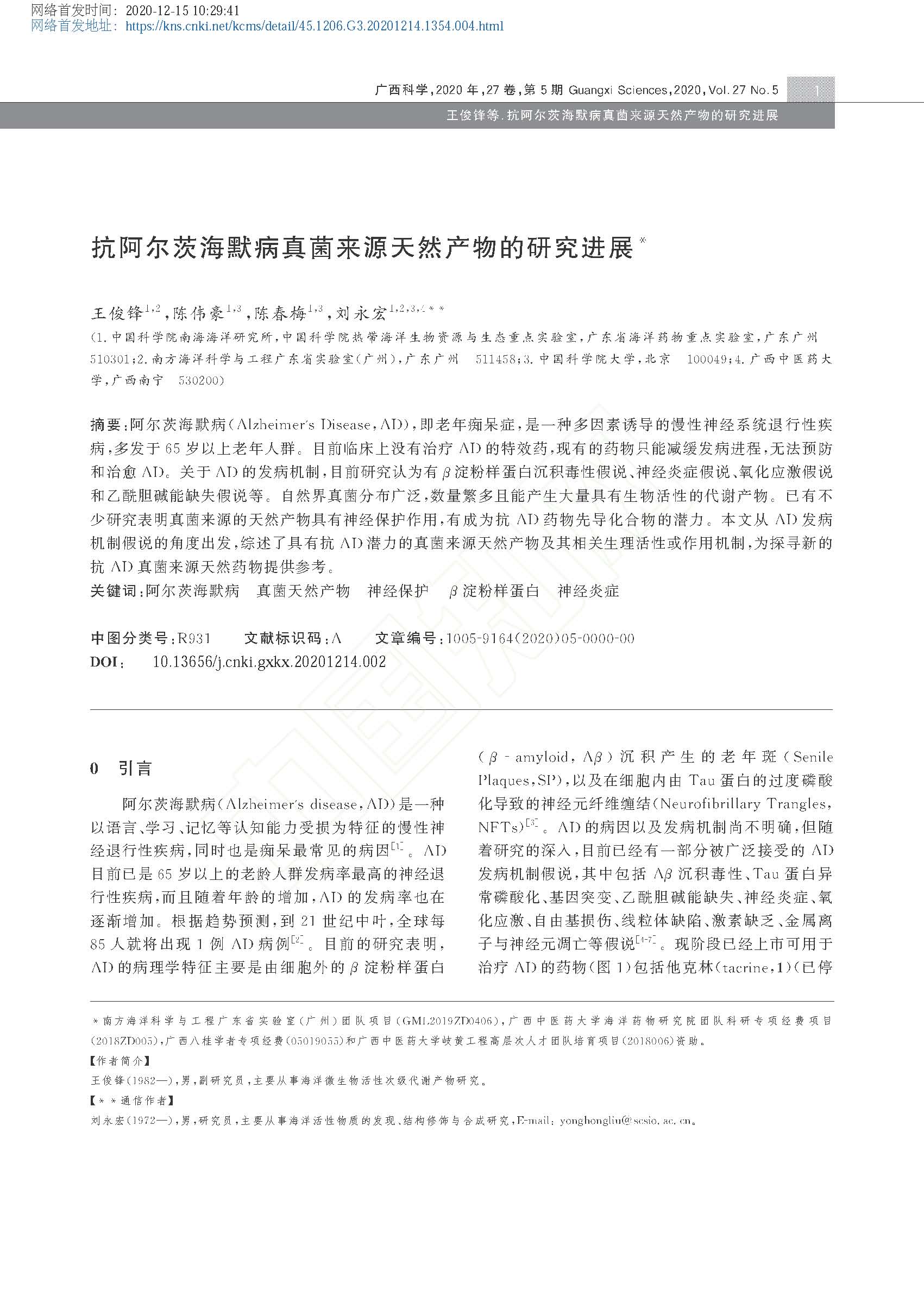 2020-抗阿尔茨海默病真菌来源天然产物的研究进展