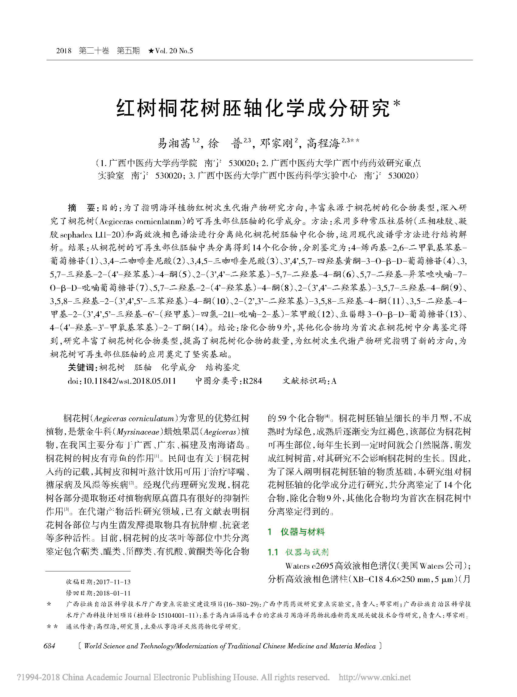 2018-红树桐花树胚轴化学成分研究