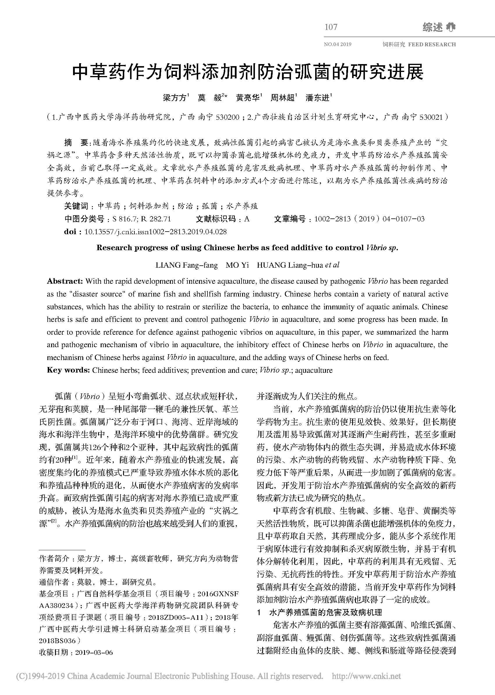 2019-中草药作为饲料添加剂防治弧菌的研究进展