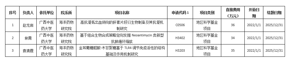 【喜讯】海洋药物研究院赵龙岩等3名同志获2021年度国家自然科学基金项目资助 作者:苏嘉福 发布时间:2021-09-08 14:41:35 浏览次数: 次 【字体:小 大】 近日,从国家自然科学基金网络信息系统传来捷报,今年我院赵龙岩、林霄、袁清霞三位同志获得国家自然科学基金项目立项资助。在此,谨向获得立项资助的赵龙岩、林霄、袁清霞同志表示祝贺,希望再接再厉,在今后的研究工作中,严格按照项目计划书的要求,积极推进项目实施,按期、优质完成研究任务,如期结题。 分享到: 【打印正文】