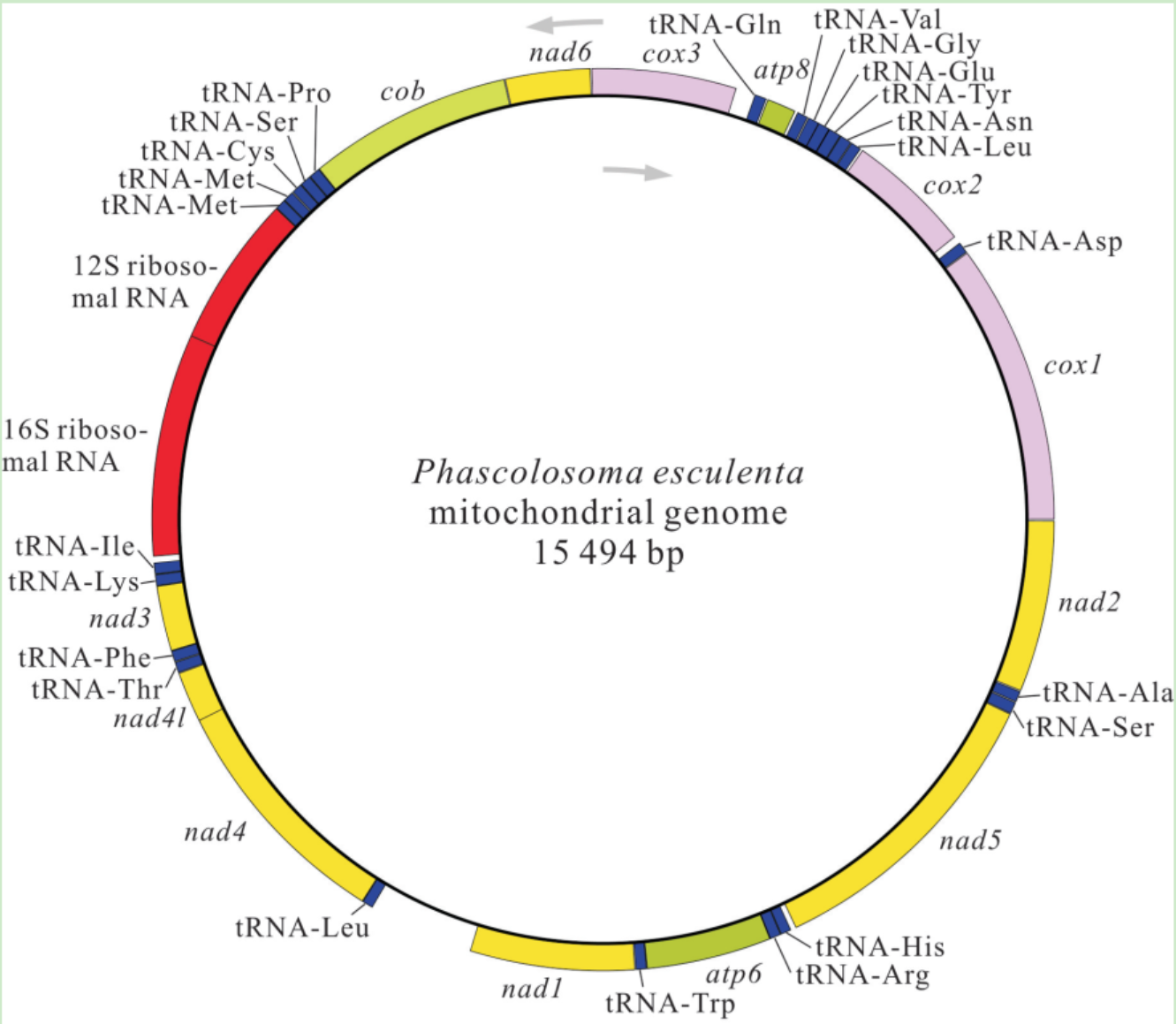可口革囊星虫线粒体基因组的基因图谱