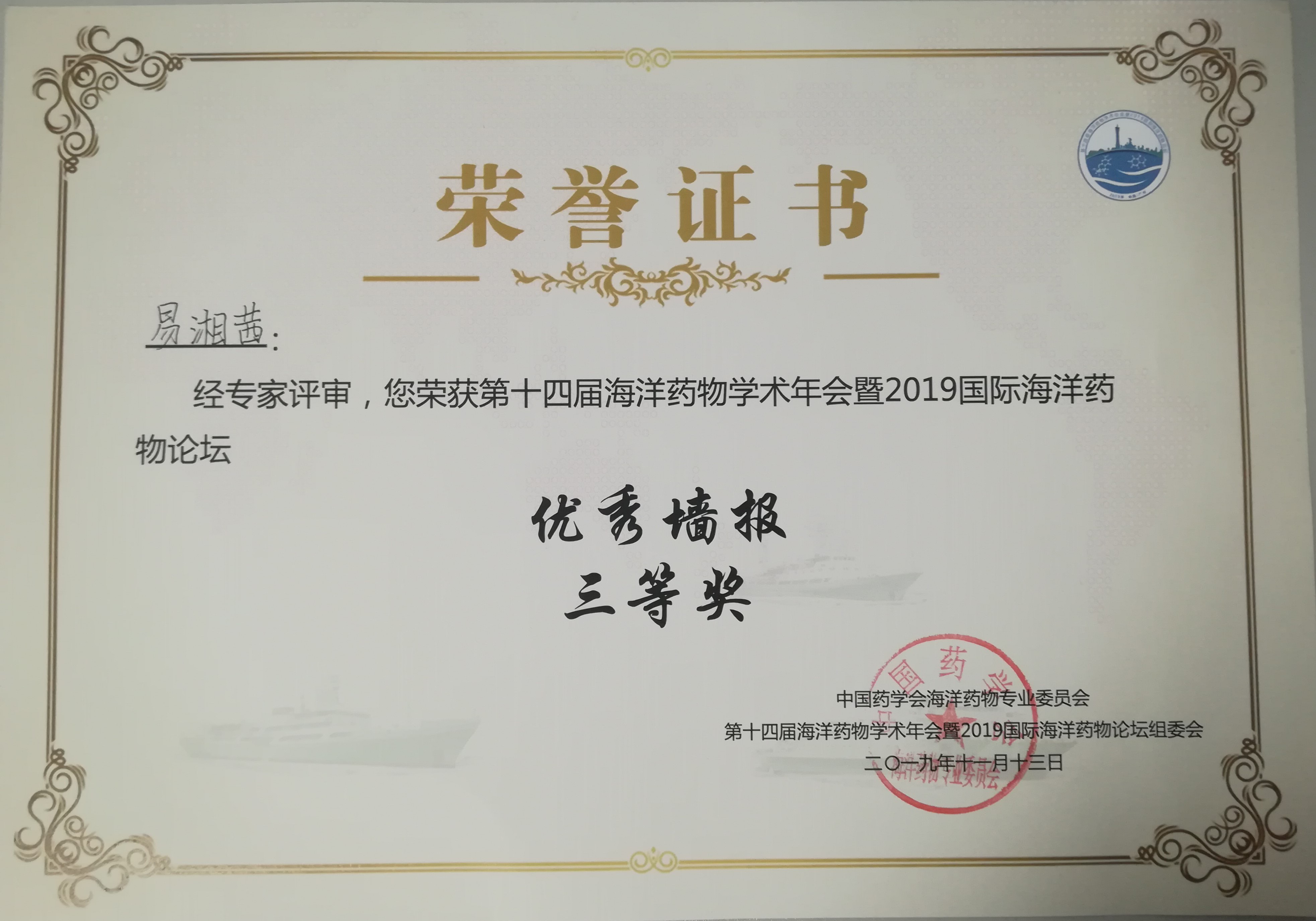 易湘茜教授的墙报或优秀墙报三等奖