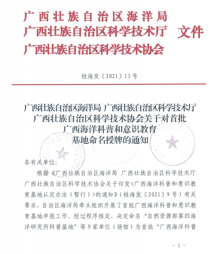 【喜讯】海洋药物研究院荣获首批“广西海洋科普和意识教育基地”授牌 发布时间:2022-01-05 11:54:39 浏览次数: 次 【字体:小 大】 http://hyj.gxzf.gov.cn/zwgk_66846/tzgg/t11075305.shtml 分享到: 【打印正文】