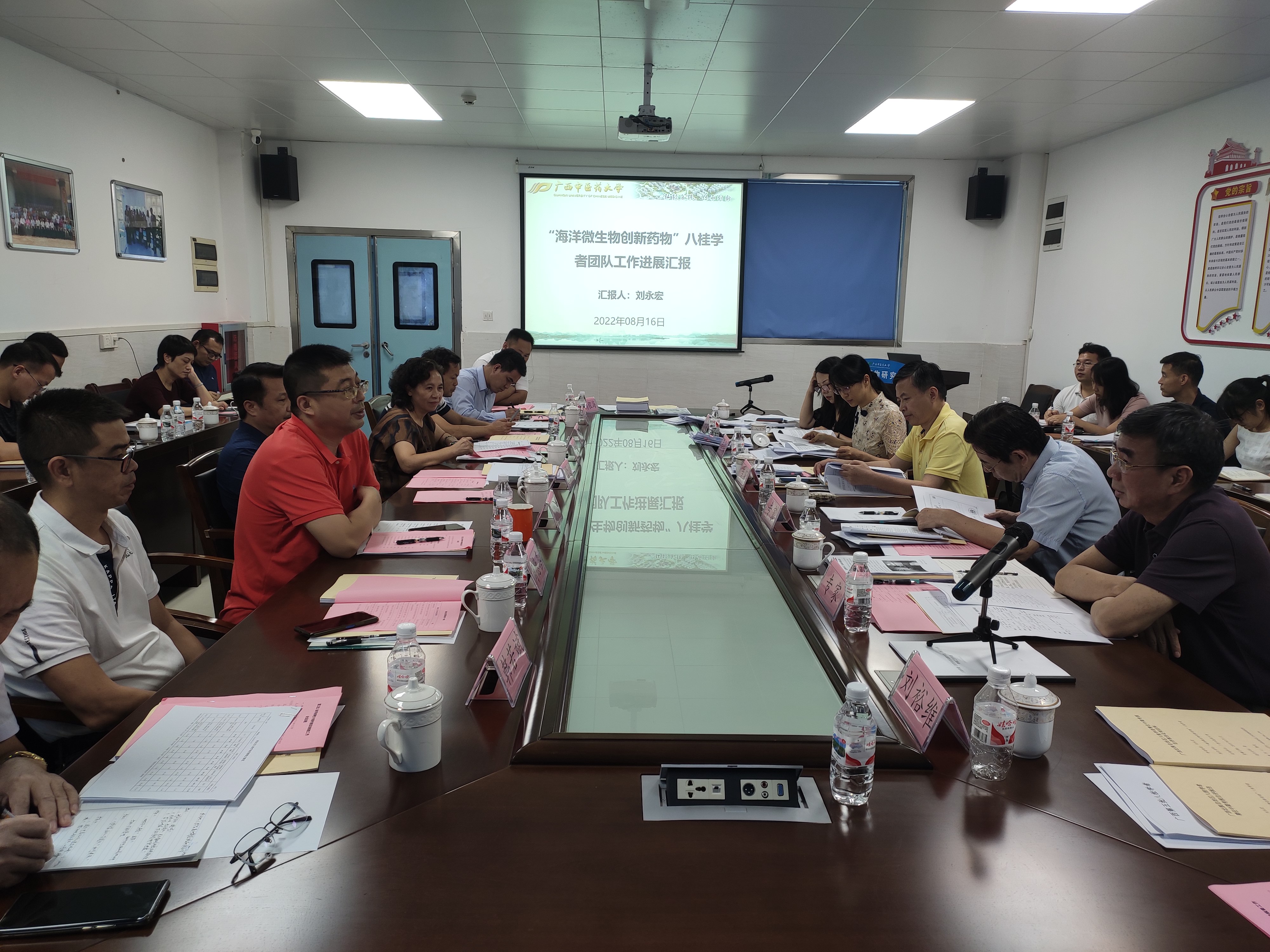 8月16日上午,受自治区科技厅委托,自治区经济社会技术发展研究所组织考核专家组到海洋药物研究院,对自治区第五批八桂学者刘永宏研究员及其团队进行中期考核实地核查。学校党委副书记庞宇舟出席汇报会议,八桂学者团队核心成员以及学校人事处、人才办、组织部、科技处、财务处、学科办、成果转化与社会服务处等职能部门负责人参加了会议。