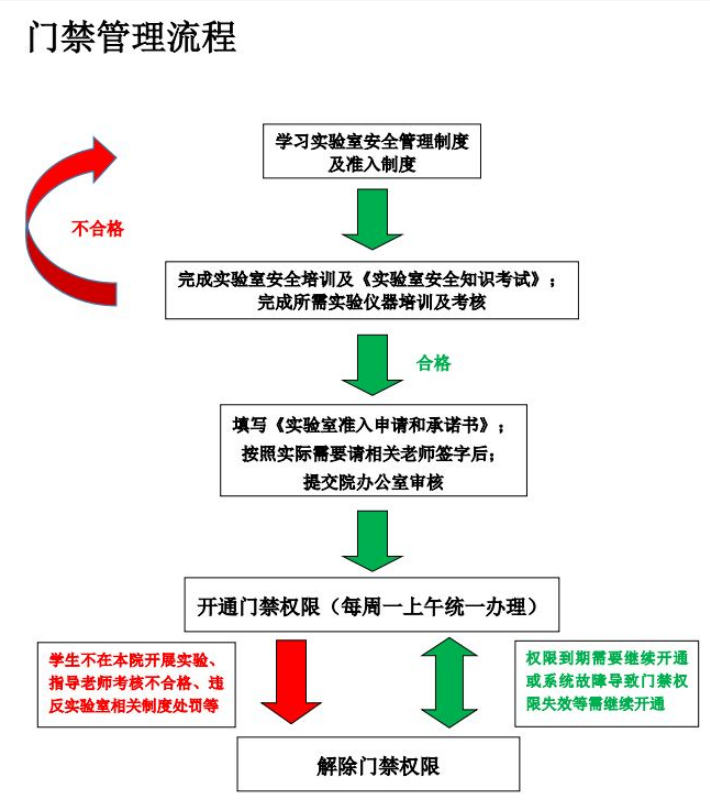 (3) 实验室负责人或(授权培训人)对申请人进行仪器操作培训、考核。实验室安全知识考试合格且实验室负责人认定该申请人具备熟练操作所使用仪器的能力后方可进入实验室工作, 以确保实验室各项工作正常有序进行。