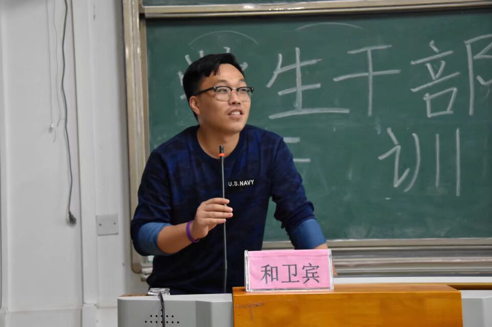 11月18日,和卫宾老师以“学生干部人际关系处理技巧与工作态度”为培训专题,切合自己的学干亲身经历向学生干部们阐述作为一名当代大学生干部该如何处理不同角色的人际关系及把握好对待工作的态度,让大家对学生干部的身份有了更好的了解,并能更灵活应对人际交往关系。老师指出,作为一名学生干部应具“责任心、谦虚心、共赢心、学习心”及“阿Q精神”,应明确自身定位,清楚自己的职责,学会虚心向他人请教,端正工作态度,发挥学生干部模范带头、组织凝聚的作用。