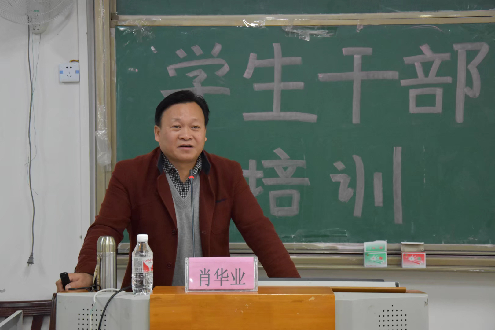 11月25日,肖华业老师为基础学生干部进行了“大学生学生干部工作艺术”专题培训,教导其如何定位学生干部这一角色——“按本色做人,按角色做人、按特色定位”,学生干部要以学生身份自居,以学习为基础,恪尽职守,提升综合素质,懂得运用高效的工作方法。肖老师同时还结合自己大学期间做学生干部丰富经历和经验,建议学生干部要明确自己的定位,发挥老师同学之间枢纽作用、映射作用、号召作用等作用,争当优秀学生干部。