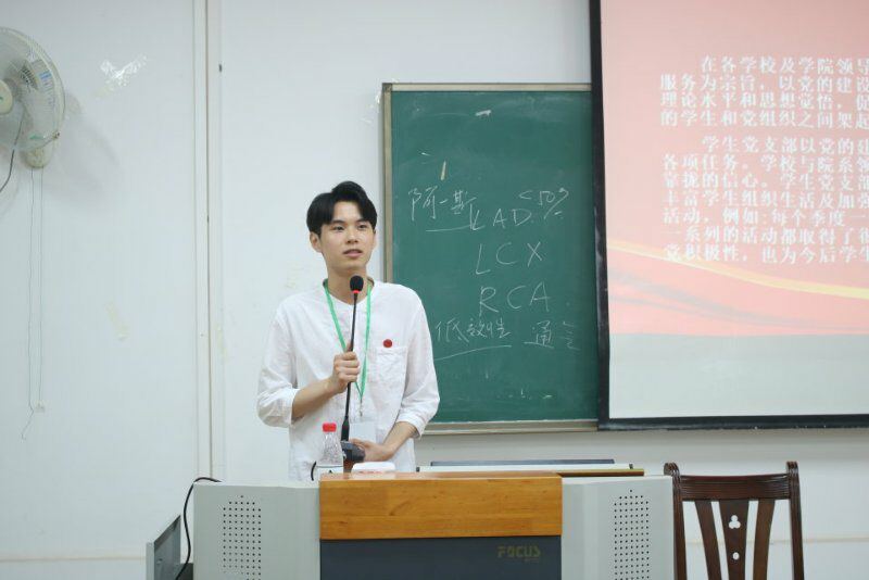 宣讲在国歌声中拉开帷幕。伍顿涛对学生党支部、“红色宣讲团”进项全面介绍,让大家更加深入了解学生党支部相关工作以及“红色宣讲团”相关内容,增进基层团支部对基层党组织认识;其次,对大学生入党流程进项全面讲解,增强同学们对党员发展工作了解;最后,伍顿涛进行了《学党史强党性》主题宣讲,通过介绍中国共产党员发展历程,将的党的性质、党的精神深刻、全面传播到基层团支部中,同时宣讲过程中还进行有奖竞赛互动环节