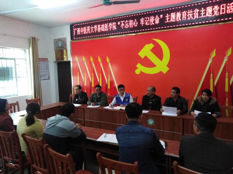 按照“不忘初心、牢记使命”主题教育的有关要求,为进一步推进扶贫工作,12月13日,基础医学院党委书记龚名师、副院长邓鑫带领学院教工党员深入隆安县南圩镇联伍村开展“不忘初心、牢记使命”主题党日活动。