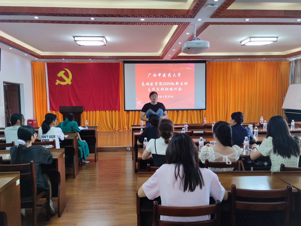 为做好2024级新生接待工作,让新生顺利、安全入校,基础医学院于8月30日下午在达道楼A305会议室开展新生班主任及班主任助理培训会。学院党委副书记李豫萍,2024级新生辅导员及30名班主任、60余名班级助理参加培训会。学生工作办公室主任杨丽琴主持会议。