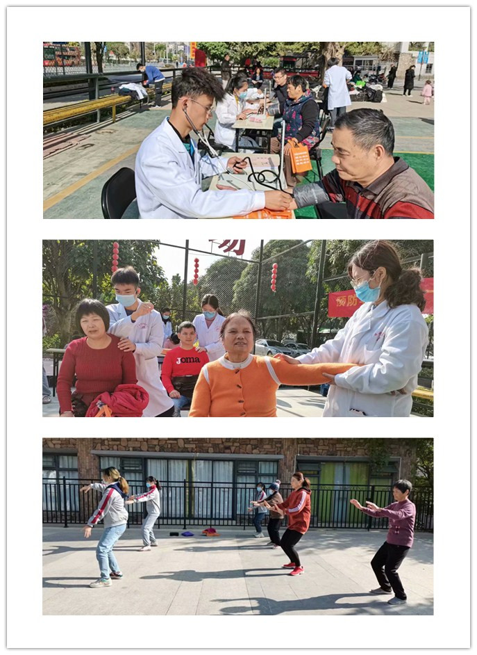 义诊现场,同学们为社区居民量血压、手法按摩、24式简化太极拳的教学、发放冬季疾病预防宣传单以及小礼品等形式。 通过本次义诊,不仅能为社区居民提供基本中医保健服务,科普养生知识,将所学的理论知识与实践相结合,进一步提高同学们的社会实践与操作能力,帮助居民做好健康防护,同时还有利于增加同学们与居民们之间的信任感、亲近感,并通过此类活动展现鸭脖医学生医者仁心、积极为人民服务的意识。同时丰富校园文化生活,给广大入党积极分子提供一个展现自我的空间,倡导更加科学、文明、健康的生活方式,提高人民群众的健康水平!