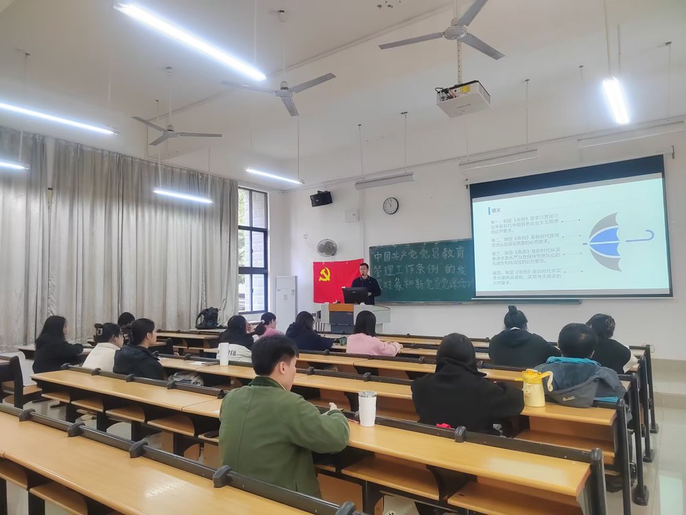为了让发展对象更加明白自身使命以及规范自身行为,提高党员队伍建设质量,推动全面从严治党向纵深发展,基础医学院学生第一党支部于12月6日上午在仙葫校区教学楼2-107顺利开展了《中国共产党党员教育管理工作条例》(以下简称“条例”)主题党课。本次会议参会人员有基础医学院学生第二党支部书记张翼鹏老师、2023年第2期发展对象及党务助理。