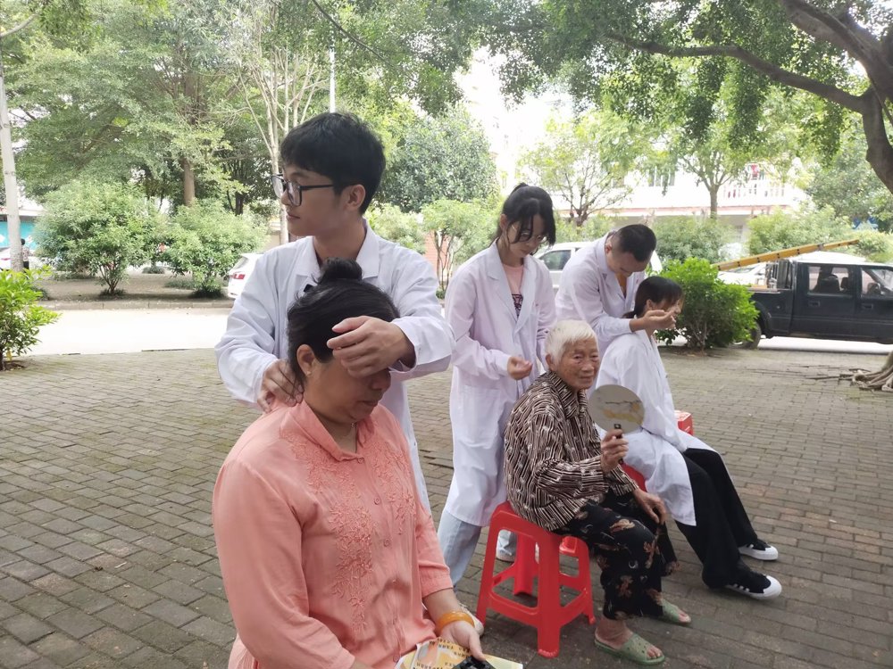 活动现场,志愿者们通过悬挂横幅、发放宣传资料让居民了解并加入义诊活动。活动过程中,志愿者们认真为居民提供测量血压、手法按摩、艾灸等一系列服务,并向居民讲解海姆立克急救法、宣传“桂十味”等广西道地药材功效及党史知识,通过发放宣传资料、现场解答的形式向居民普及老年人日常健康知识及自我保健方法。志愿者们对居民提出的健康问题尽己所能耐心解答,并叮嘱他们在生活中注意合理膳食、有规律的生活和科学锻炼身体,同时为社区居民送上我们精心准备的小礼品。志愿者们暖心的服务得到了居民们的肯定。最后,各项义诊活动圆满结束,大家合影留念。
