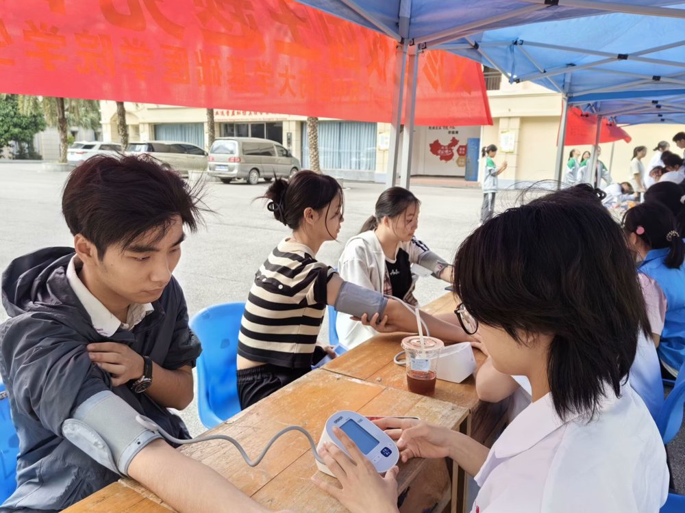 基础医学院学生第一党支部在南宁市青秀区广西外国语学院顺利开展“德馨韵医道,义诊泽万民”义诊志愿服务活动