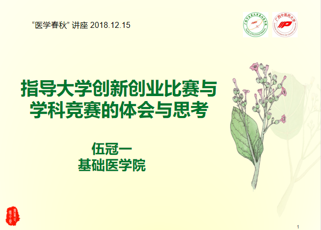 伍冠一老师---指导大学创新创业比赛与学科竞赛的体会与思考