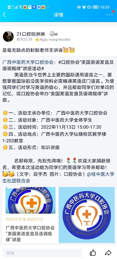 封毅老师开展“美国英语发音及语调规律”学生讲座