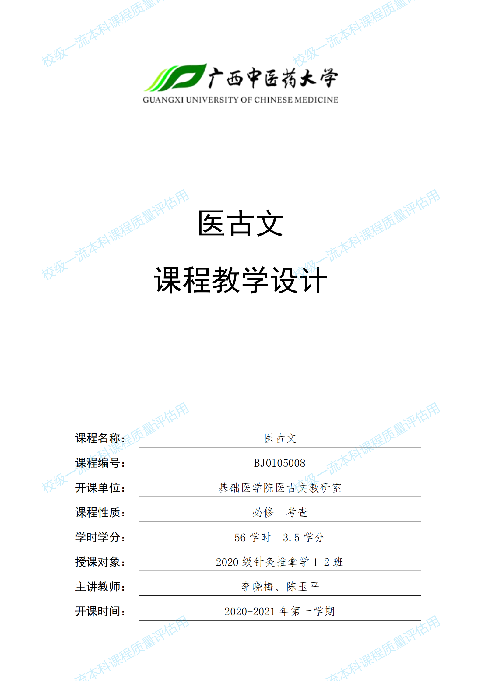 医古文课程教学设计(2020-2021)【校级一流本科课程质量评估用】 来源:医古文教研室 作者:医古文教研室 发布时间:2021-03-08 11:16:54 浏览次数: 次 【字体:小 大】 【校级线上线下混合式一流本科课程质量评估材料】 医古文课程教学设计(2020-2021上) 点击图片或链接浏览:/UploadFiles/jys/2021/3/202103081115235615.pdf 分享到: 【打印正文】