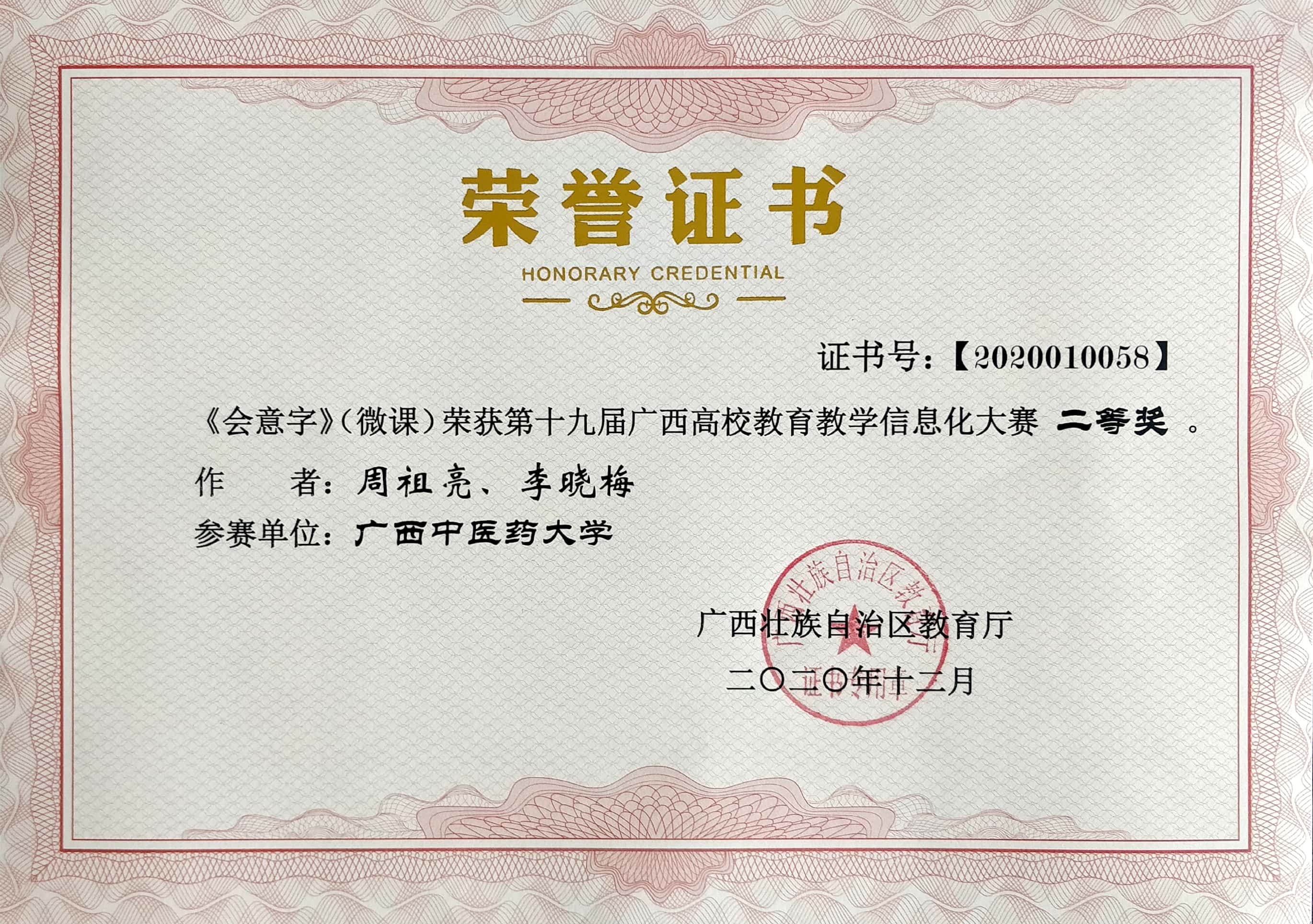 【喜讯】医古文教研室微课作品在第十九届广西高校教育教学信息化大赛中获奖 来源:本站原创 作者:医古文教研室 发布时间:2021-12-07 14:58:42 浏览次数: 次 【字体:小 大】 2020年11月14日,第十九届广西高校教育教学信息化大赛(现场决赛)在广西大学行健文理学院相思湖校区举行。我教研室周祖亮、李晓梅两位老师制作的微课作品《会意字》在竞赛中荣获二等奖。李晓梅老师在决赛现场参与答辩李晓梅老师(左三)与鸭脖参赛团队工作人员合影获奖证书(扫描件) 分享到: 【打印正文】