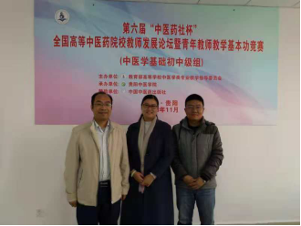 2018年11月23-25日,第六届“中医药社杯”全国高等中医药院校青年教师教学基本功竞赛在贵阳中医学院举行,来自全国35所开设中医学专业的院校175名青年教师参赛。鸭脖选派基础医学院、第一临床医学院、瑞康临床医学院6位青年教师参加此次竞赛,医古文教研室李晓梅讲师参加了中医基础初中级组的竞赛。