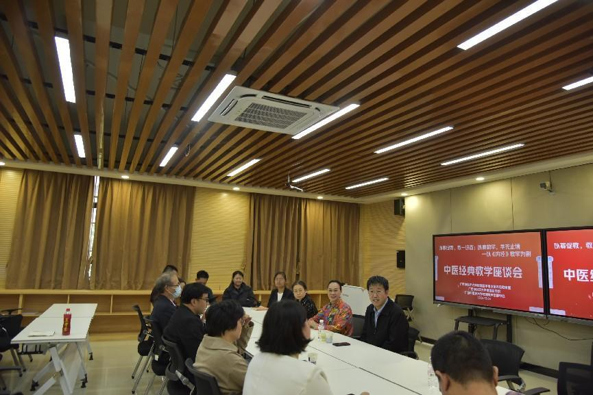 讲座结束后,陈子杰与经典教研室教师座谈交流,与会人员就如何提高教学水平、如何坚守中医思维以及教学科研相互融合提高等相关问题进行了热烈讨论。
