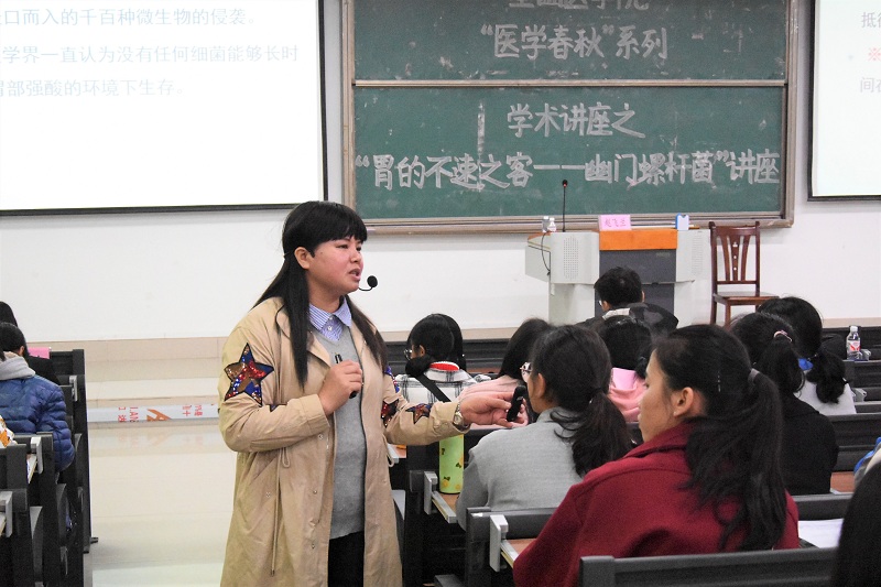 赵飞兰老师为学生进行题目为《胃的不速之客——幽门螺旋杆菌》学术讲座