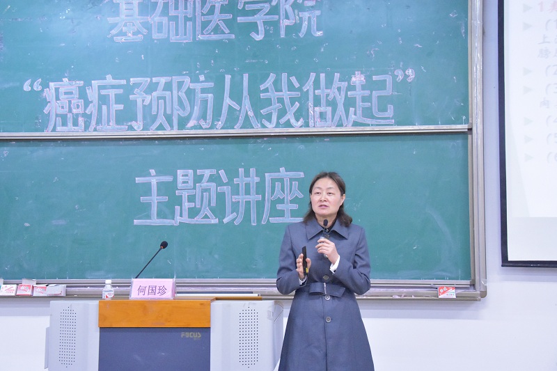 何国珍老师对学生进行的题目为《预防癌症从我做起》学术讲座