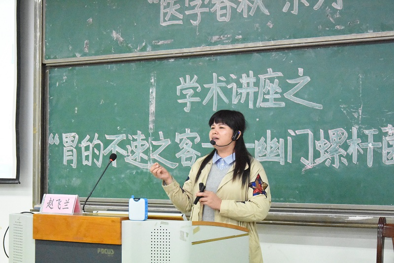 赵飞兰老师对学生进行题目为《胃的不速之客——幽门螺旋杆菌》学术讲座