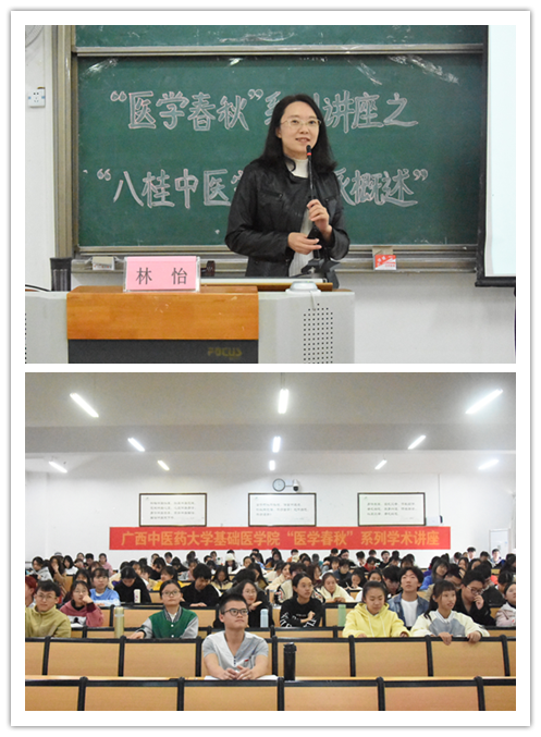 12月15日下午,在仙葫校区1-205教室举行“医学春秋”系列学术讲座之《八桂中医学术流派概述》,由林怡副教授主讲,基础医学院近200名同学参加本次讲座。