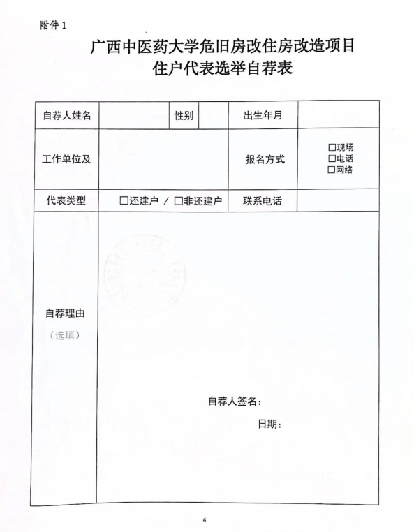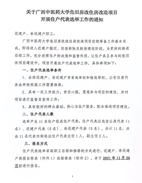 关于YABO鸭脖危旧房改住房改造项目开展住户代表选举工作的通知 作者:项目办 发布时间:2021-11-18 16:47:26 浏览次数: 次 【字体:小 大】 还建户名单: 非还建户名单: END # 扫码关注 # 拆旧家建新家 民心工程为大家 附件下载1:自荐表/UploadFiles/2021/11/202111190929369164.doc 附件2:推荐表/UploadFiles/2021/11/202111190929556904.doc 分享到: 【打印正文】