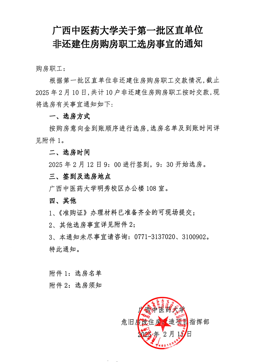 YABO鸭脖关于第一批区直单位非还建购房职工选房事宜的通知