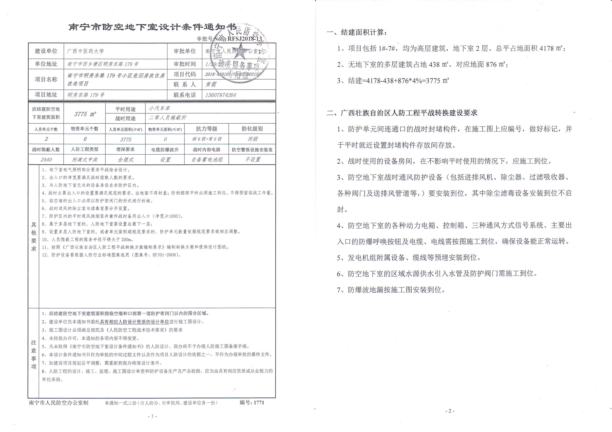 取得《南宁市人民防空地下室设计条件通知书》(审批批号No:RFSJ2018-13) 发布时间:2019-08-09 17:15:07 浏览次数: 次 【字体:小 大】 2018年1月29日,取得《南宁市人民防空地下室设计条件通知书》(审批批号No:RFSJ2018-13)。 分享到: 【打印正文】