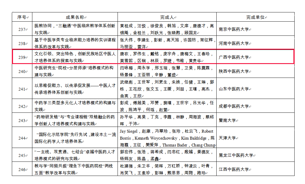 近日,教育部下发《关于批准2018年国家级教学成果奖获奖项目的决定》(教师〔2018〕21号),正式公布了2018年国家级教学成果奖评选结果。本次高等教育国家级教学成果奖共有452项,其中:特等奖2项,一等奖50项,二等奖400项。鸭脖《文化引领,突出特色,创新民族地区中医人才培养体系的探索与实践》获成果二等奖,实现了鸭脖国家级教学成果奖的历史性突破。