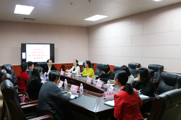 3月12日上午,桂林医学院教师教学发展中心主任白玲、副主任李荔一行5人来鸭脖考察交流。鸭脖总督学罗伟生,督学组副组长李培春、陈雪斌、辛宁,教评中心主任莫雪妮,副主任王春玲,教师教学发展中心主任朱珠参加座谈交流会,会议由莫雪妮主持。