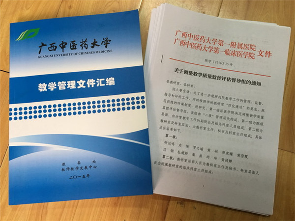 2016年3月上旬,第一临床医学院印发了《关于调整教学质量监控评估督导组的通知》文件,该文件进一步强化了一附院教学质量保障的主体意识,明确严格按照学校和第一临床医学院有关规章制度,完善了本科教学工作及其质量常态监控机制,有力地促进了第一临床医学院教学质量的提高。