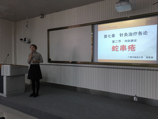 本学期教学示范课与第四届校级教师教学基本功比赛赛前培训相结合,通过优秀教师示范、自我教学反思、专家点评三个环节进行示范课展示。示范课邀请了第四届全国高等中医药院校青年教师教学基本功比赛三等奖获得者第一临床医学院胡苗苗老师、第三届全区高校青年教师教学技能竞赛一等奖获得者药学院郭占京老师、2016年瑞康临床医学院讲课比赛一等奖获得者刘旭鹏老师分别进行示范。