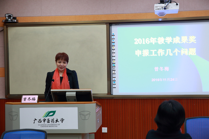 为了进一步做好鸭脖自治区级教学成果奖的凝练和申报工作,提升鸭脖教学成果奖的申报质量,11月25日上午,学校邀请了广西大学教育学院院长曾冬梅教授在仙葫校区给鸭脖教师作2016年自治区级教学成果奖凝练及申报培训讲座及指导,讲座由罗伟生副校长主持。