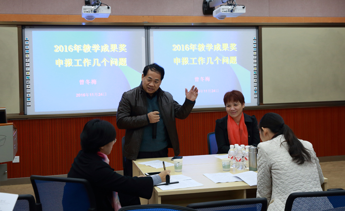 曾冬梅教授以“2016年教学成果奖申报工作的几个问题”为主题,从教学成果的内涵要求、教学成果的特点、教学改革项目与教学成果、教学成果奖的关系、申报成果奖注意的几个问题、如何展现成果亮点等方面,结合自己几十年来在教改立项和教学成果奖申报方面取得的心得和经验,对鸭脖教师申报教改项目和教学成果奖进行了深刻、积极有效的指导。整场讲座内容丰富、气氛活跃,使在座的教师受益良多。