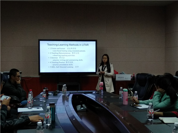 本场沙龙活动由基础医学院的苏阳、陈永欣两位老师主讲,苏老师和陈老师均是赴马来西亚拉曼大学参加教学培训的教师。经过简要介绍在拉曼大学参加教学培训的课程设置、培训方法等情况后,首先是陈老师以“UTAR课堂教学观摩体会”为主题,与在座教师分享了自己在教学培训中对教学示范的一些思考和感悟,接着苏老师以“解剖学的理论与实践教学”为主题,与在座教师分享了自己在教学培训中对解剖学教学的感想。