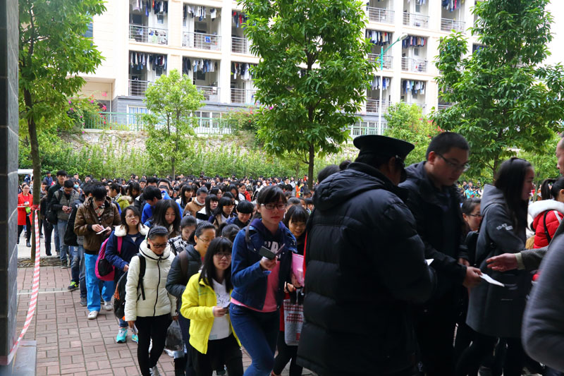 考生们排队入场,秩序井然
